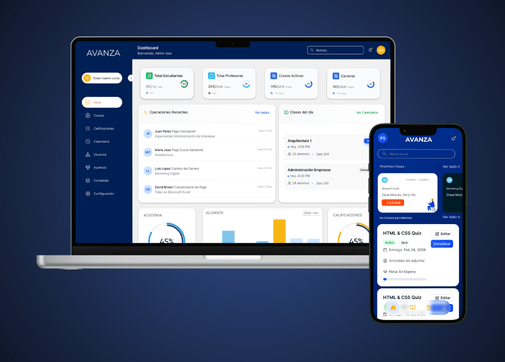 Implementación que permite a los Administradores el control total de procesos, a los Docentes la digitalización eficiente del aula, y a los Estudiantes un acceso fluido a contenidos y analíticas de progreso en tiempo real.
